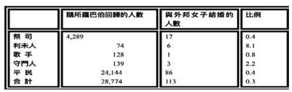 『10:17 到正月初一日,他們把所有娶外族女子的案件都調查過了。』結果發生了不得了之事,從上到下都犯了罪得罪上帝,十八節開始:以下是娶外族女子的人的名單:祭司(以宗族排列):約薩達的子孫,耶書亞和他兄弟們的宗族:瑪西雅、以利以謝、雅立、基大利。我們來參照這個表格(查經資料大全)